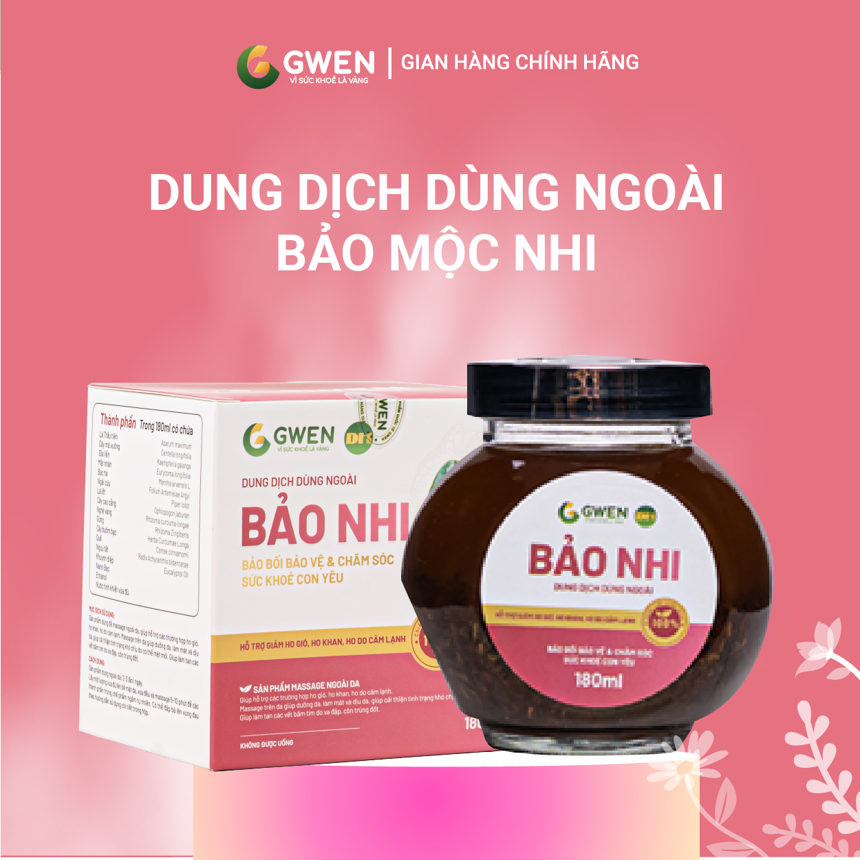 Dung Dịch Dùng Ngoài Bảo Nhi Gwen 180ml – Hỗ Trợ Giảm Ho, Làm Dịu Da, Tan Bầm Tím