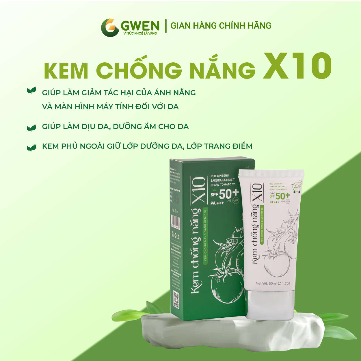 KEM CHỐNG NẮNG X10 GWEN – BẢO VỆ DA TỐI ƯU, DƯỠNG ẨM SUỐT NGÀY
